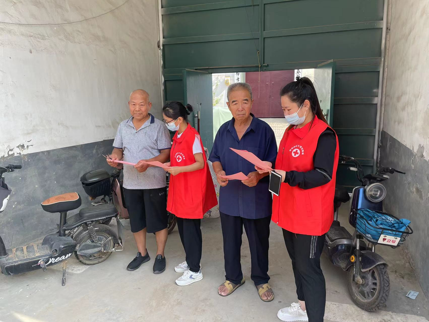 活动现场,红十字志愿者在村主干道向广大村民发放宣传材料,并为群众讲解用电、用气、汛期防溺水等安全知识及日常应急避险安全知识,倡导大家要不断增强安全意识,切实保护自身生命财产安全。还组织志愿者挨家挨户进行“敲门送安全”,发放家庭急救手册,详细讲解了气道异物梗阻、心梗脑梗等常见老年病相关应急救护知识。对独居、高龄老人,志愿者们积极排查家中用电、用气等安全隐患,并协调资源为老人们免费办理燃气保险130余份,发放红十字宣传资料150余份。