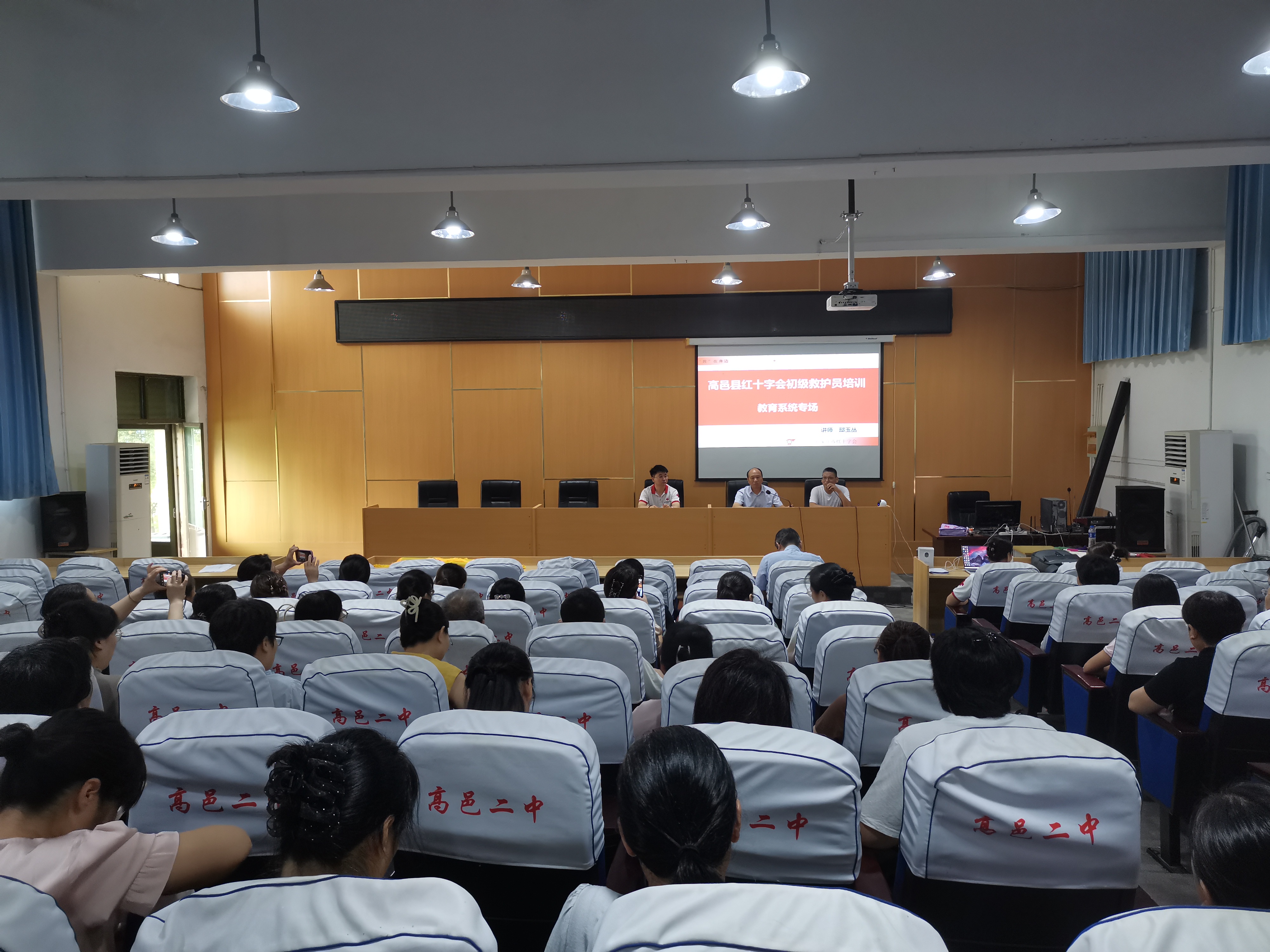 为扎实推进高邑县应急救护培训进校园工作,不断提升学校老师应急救护知识和技能,8月21日,高邑县红十字会邀请市红十字卫生救护培训中心梁大伟老师等七名讲师在高邑县第二中学为老师们授课。